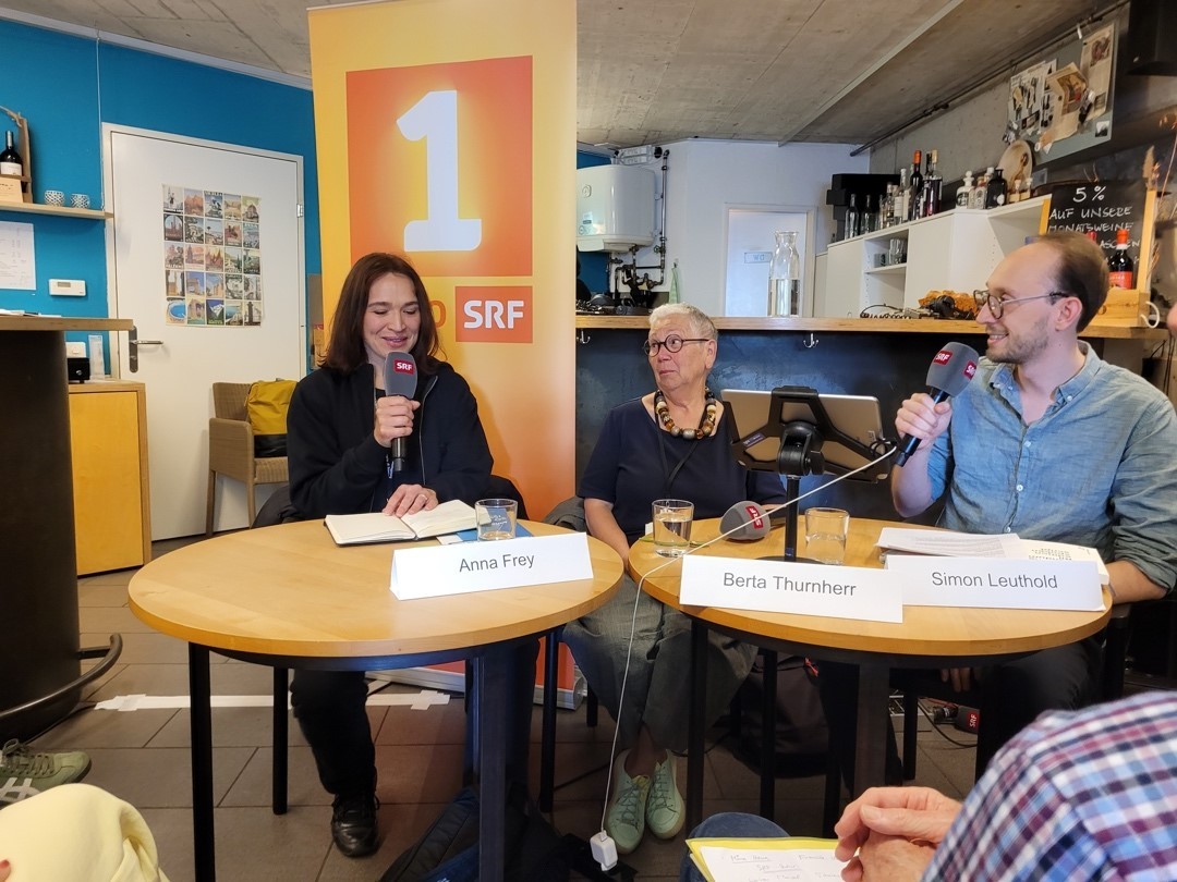 Am 19. Mai organisierte die SRG Schwyz für ihre Mitglieder einen Besuch der Radiosendung «Dini Mundart – Schnabelweid», die anlässlich der Solothurner Literaturtage aus dem mobilen Studio in der Cantina del Vino am Solothurner Landhausquai gesendet wurde. Die Solothurner Literaturtage, an denen in diesem Jahr über 70 Autor:innen und Übersetzer:innen ihre Arbeit vorstellten, finden jährlich statt und bieten nebst Lesungen ein vielschichtiges Rahmenprogramm mit Live-Sendungen des SRF-Literaturteams.