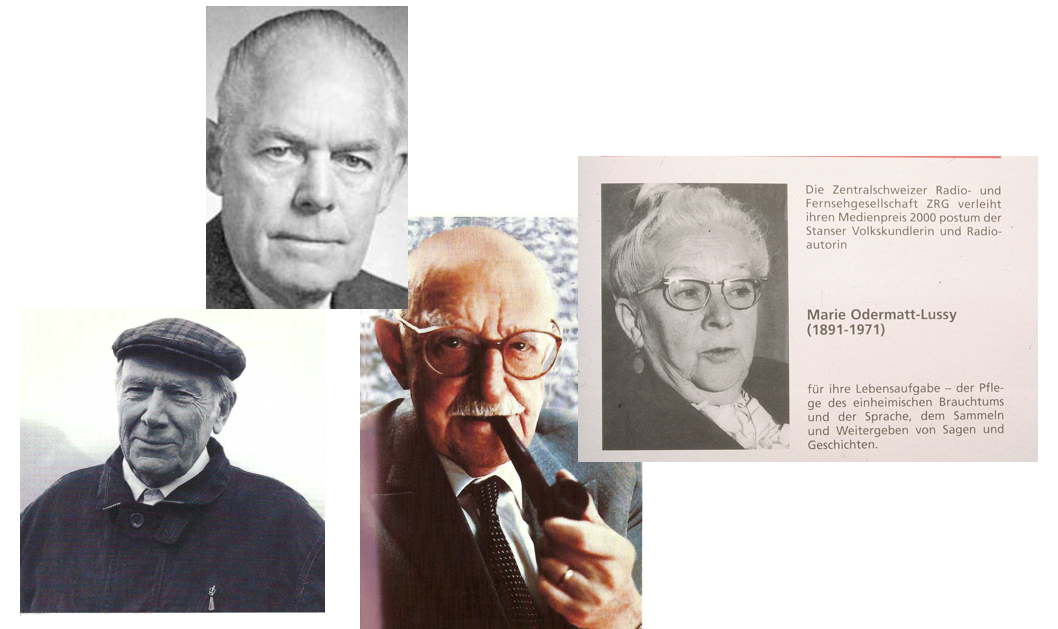 - Die grössten Preise gehen jedoch 1961 an Josef von Matt senior (Bild u.r.) und im Jahr 2000 an Marie Odermatt-Lussy (Bild o.r.) Josef von Matt wird der Radiopreis der IRG für sein Radio-Schaffen verliehen. In der Ansprache hebt IRG-Präsident Gotthard Egli die Verdienste der Familie von Matt hervor, das Studio Basel gratuliert und alle Regierungsräte sind bei der Preisübergabe im Rathaus in Stans anwesend. Die Stanser Volkskundlerin und Radioautorin Marie Odermatt hingegen kommt im kleineren Kreis zu Ehren: 2000 erhält sie postum den ZRG-Medienpreis für ihre Arbeiten. Im Theater an der Mürg hält Brigitt Flüeler, die Präsidentin des Historischen Vereins Nidwalden, die Laudatio.
